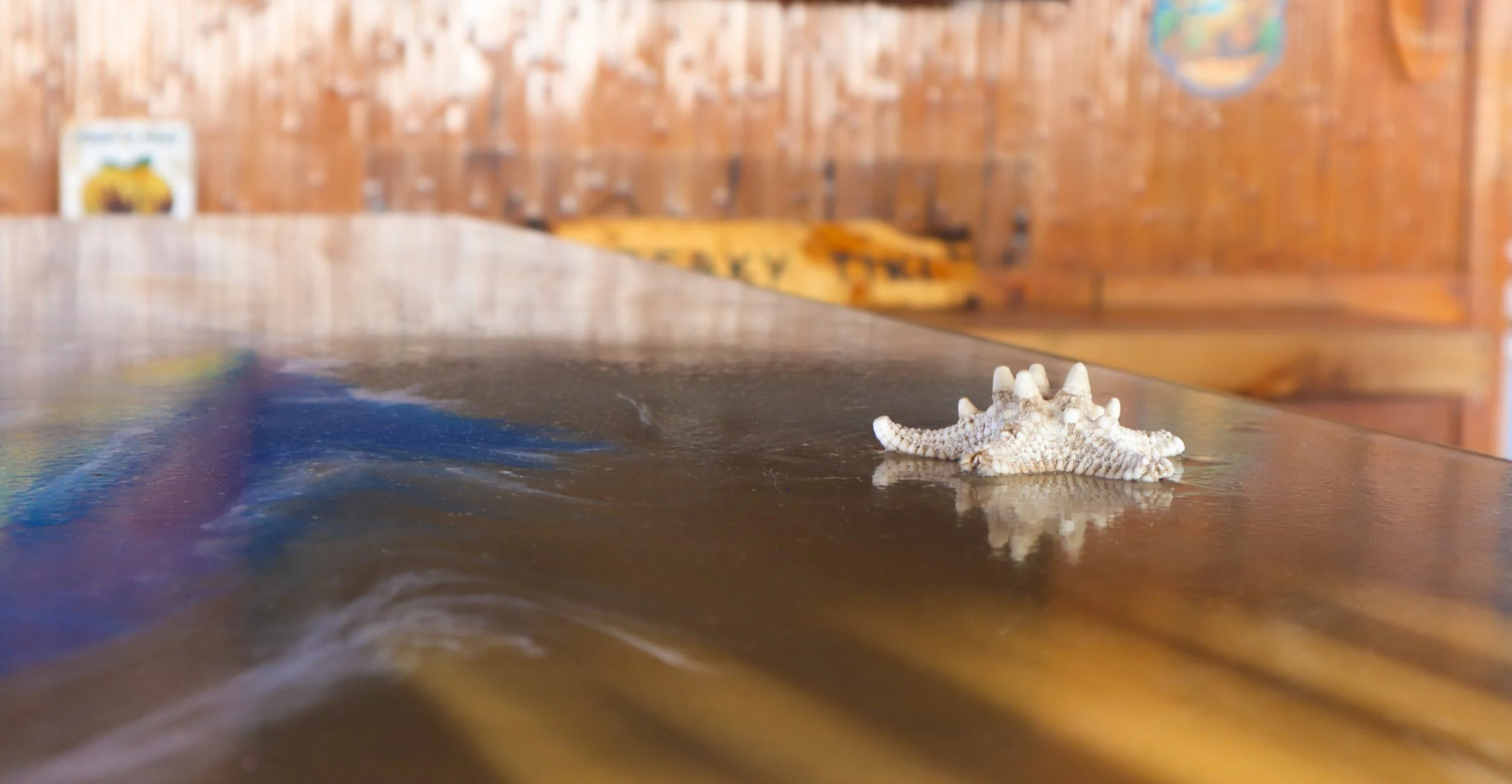 • A small starfish on a custom epoxy bar.